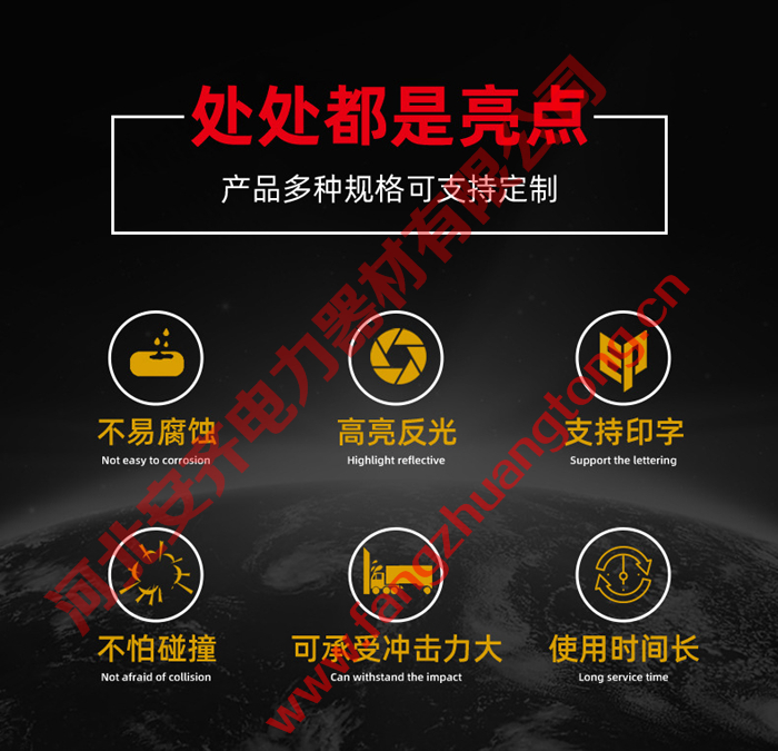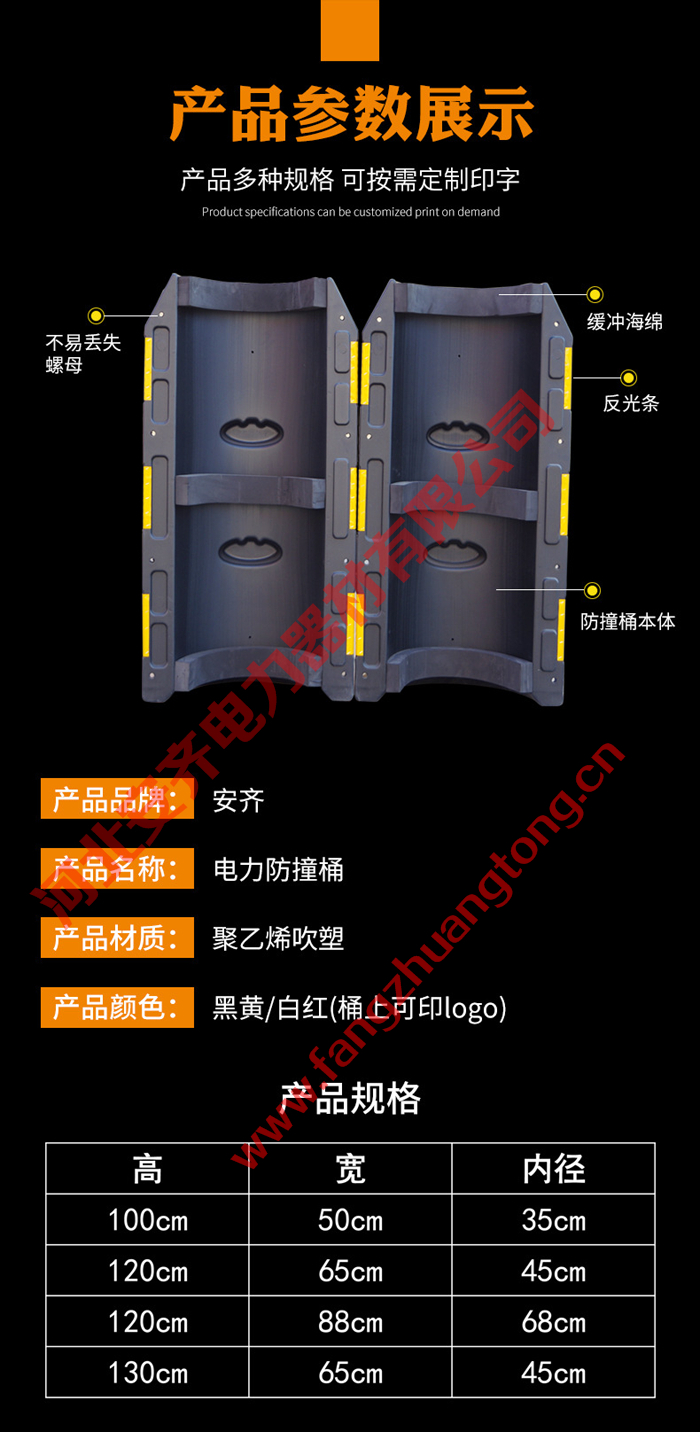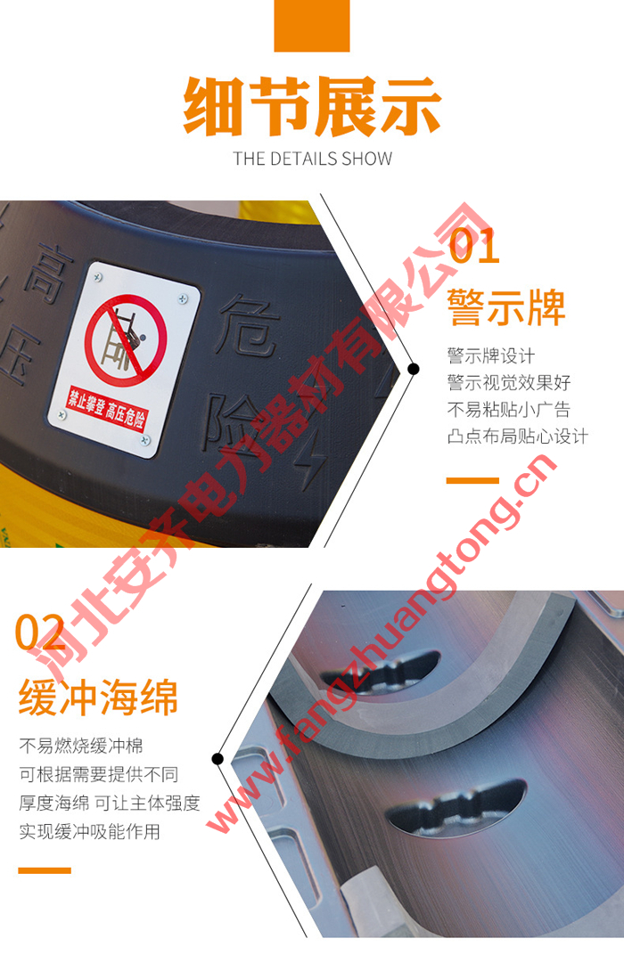 电杆警示防撞墩分为黄黑色和红白色,适用于10-18米电杆安装。我们的电杆警示防撞墩也可以制定您需要的颜色和大小尺寸,这种分类大大简化了产品的选择过程。
